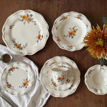 Vajilla de cerámica francesa Retro Rose Manor desechable, juego de tazas, platillos y cuencos, plato de sopa y cena, plato dulce, venta al por mayor