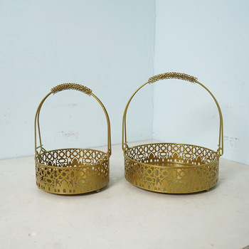 Porta oggetti in metallo portatile secchio pieghevole Festival arabo ispirato piatto di frutta contenitore per cibo vassoio Snack