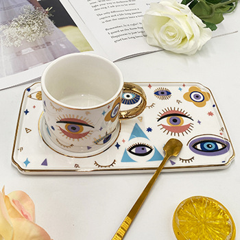 ชุดถ้วยกาแฟและจานรองเซรามิกสไตล์ยุโรปมีดวงตาใหญ่เครื่องใช้ในครัวเรือนดีไซน์ทันสมัยสำหรับชายามบ่าย